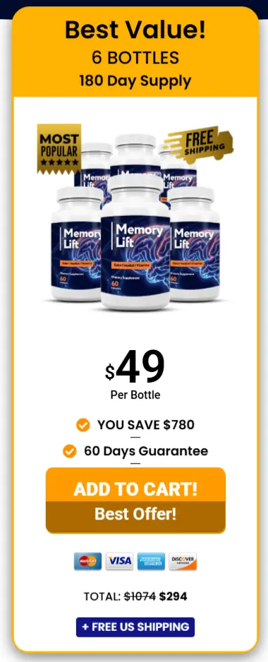 To ensure the authenticity and safety of your purchase, it’s highly recommended that you get Memory Lift exclusively from the official website. Right now, you can even enjoy up to 73% off on the 6-bottle package, saving up to $780.