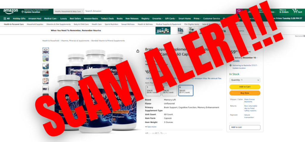 Our team uncovered numerous alarming complaints from individuals who ordered what they believed to be Memory Lift through third-party websites like Amazon, eBay, or even Walmart. These customers reported receiving counterfeit bottles with altered or completely different ingredients — products that were not only ineffective but also carried potential health risks.